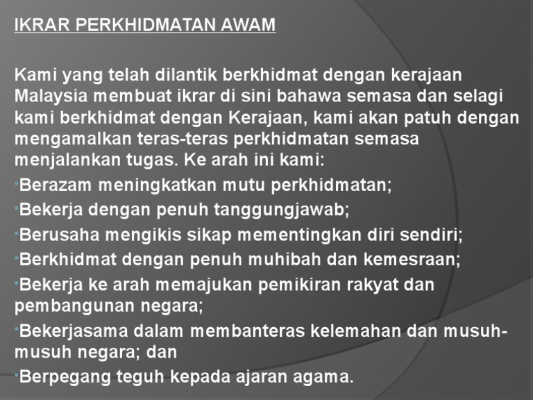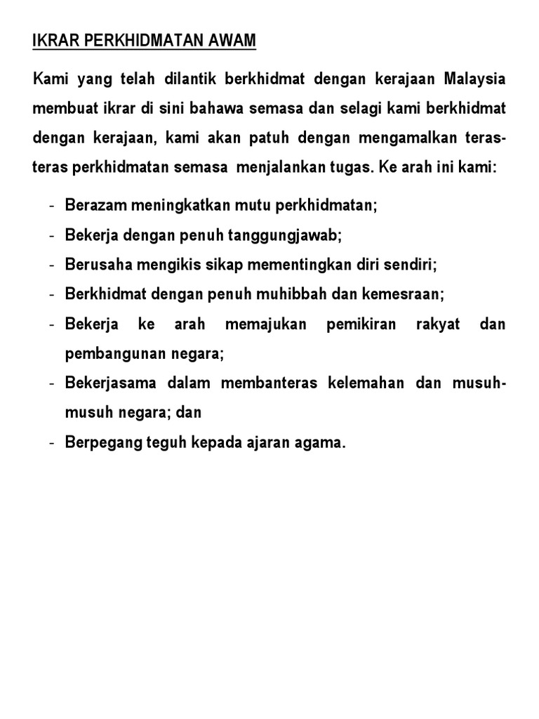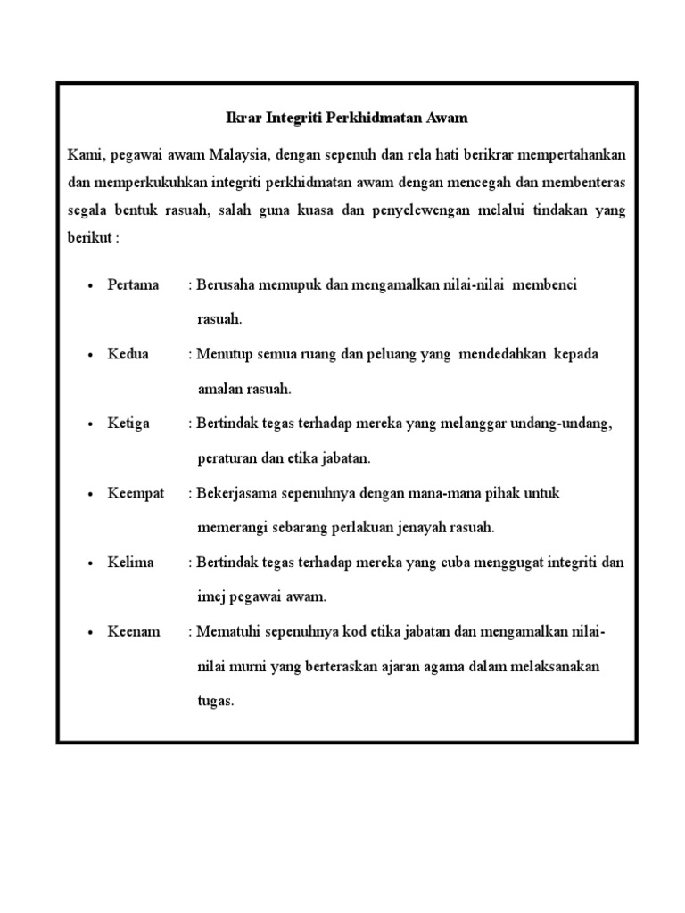 Related : Ikrar Integriti Perkhidmatan Awam / .pentadbiran kerajaan kerana boleh meningkatkan imej perkhidmatan awam..